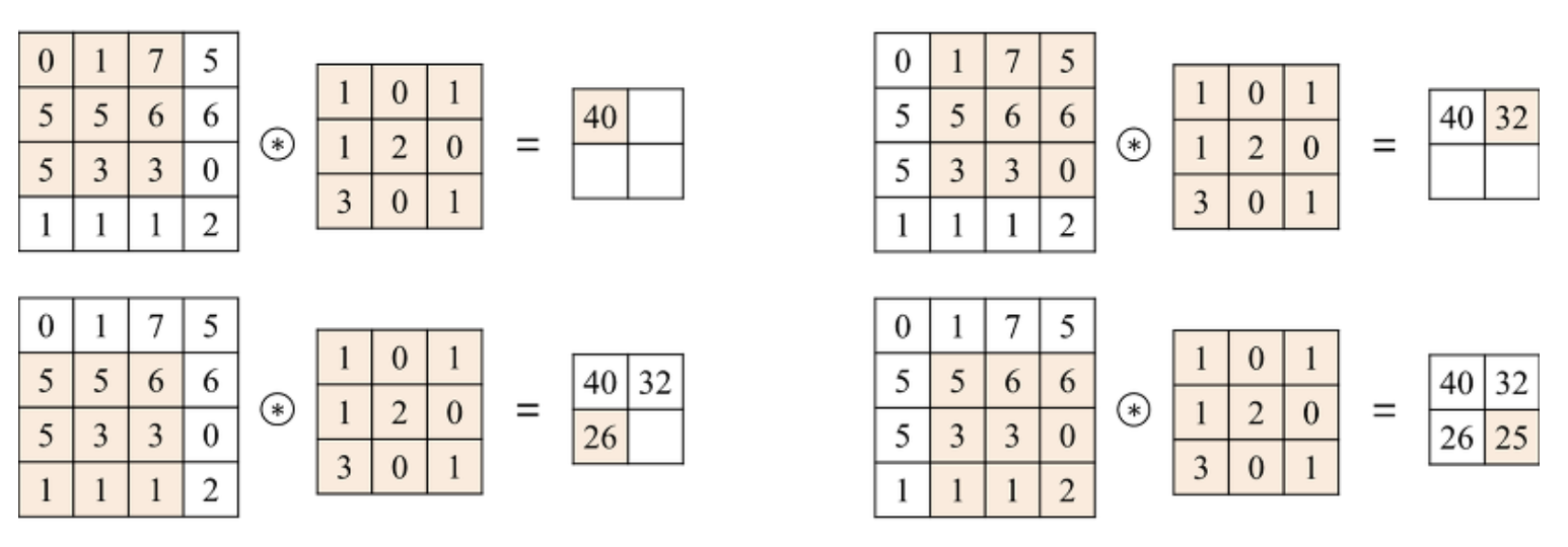 위 그림의 예시에서는 bias를 더하는 것이 생략되었는데, 실제 구현에서는 합성곱을 통해 생성된 행렬 형태의 이미지에 bias라는 스칼라값을 동일하게 더하도록 구현되기도 한다.