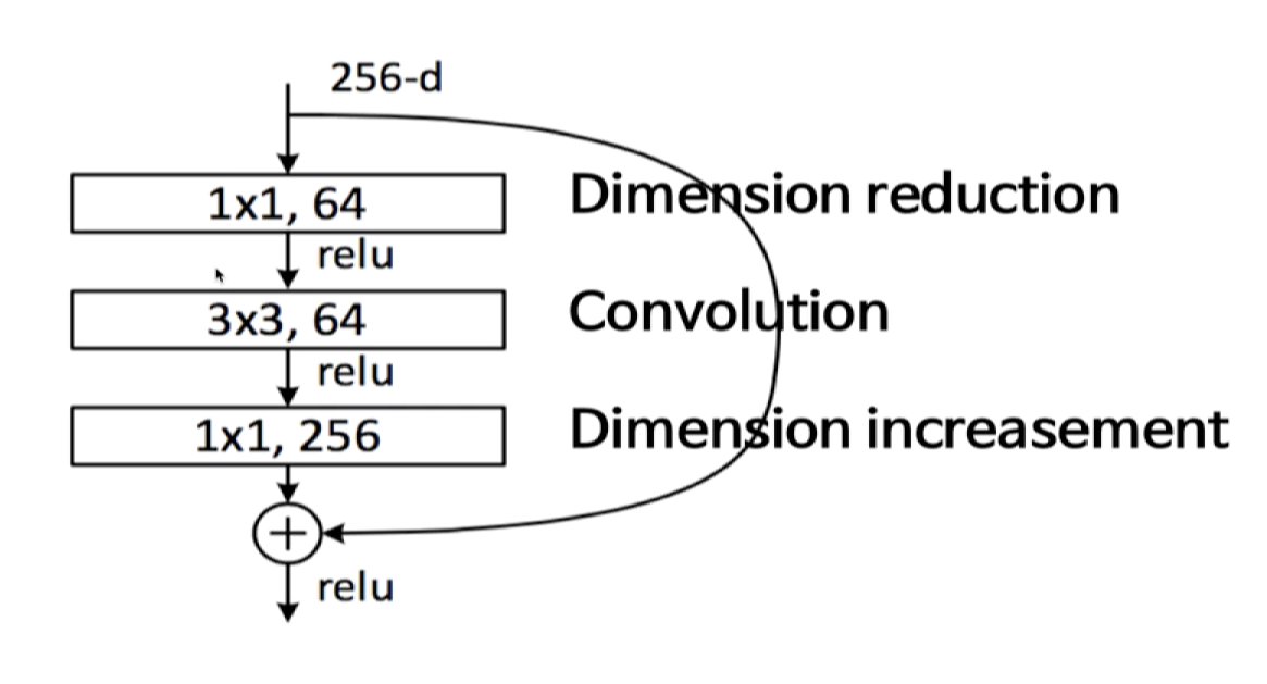 여기도 1 x 1 convolution을 추가하고 입력과 출력의 Dimension을 맞춰주어야 하므로 마지막에 1x1, 256 layer를 추가해준다.