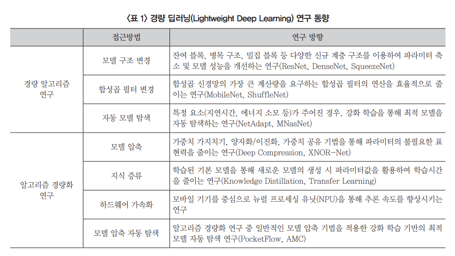 먼저 '경량 알고리즘 기술' 부터 살펴보면,
