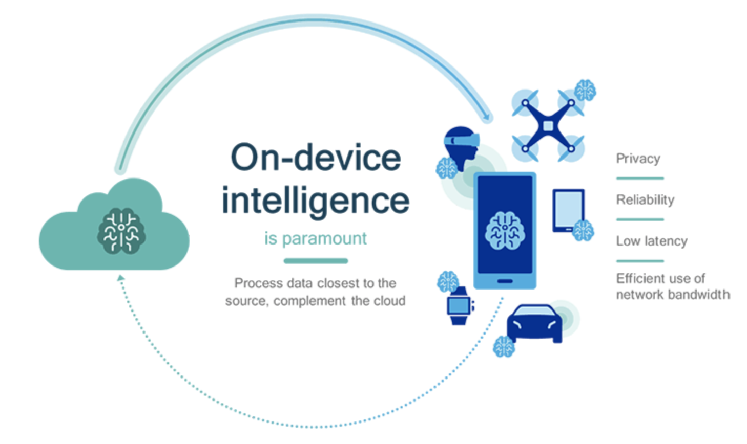 On-device AI란 딥러닝 추론 분야를 서버를 통하는 것이 아닌 휴대용 기기 안에서 이루어지도록 하는 하드웨어 컴퓨팅을 말합니다. 스마트폰에는 이미 NPU라는 이름으로 들어가 있으며, 자율 주행 차량에도 이를 도입하려고 하고 있습니다.