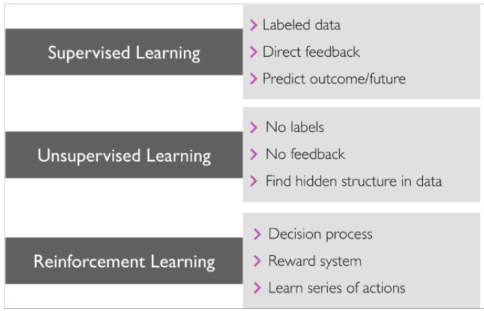 아래는 머신러닝 종류 3가지의 특징을 정리한 그림이다. 참고하면 좋을 것 같다:)