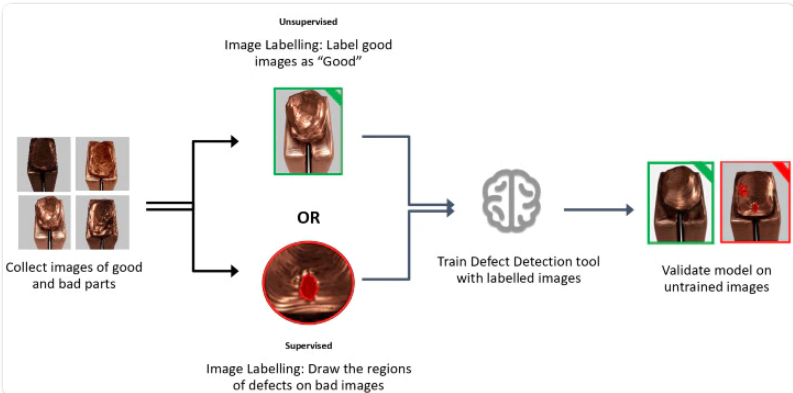 supervised learning은 defect 영역을 일일이 labeling 해주는 것이다. 어떤 것이 defect 인지를 인지 시켜준다. 그래서 정확도는 unsupervised learning보다 높지만 초기 데이터 가공에 많은 시간이 필요하다.