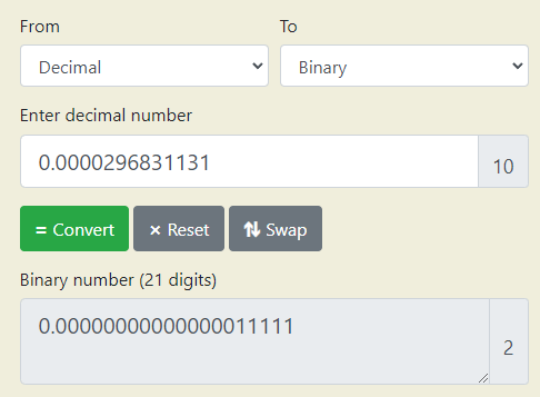 decimal to binary 변환에서 오차가 발생하는 것으로 보인다.