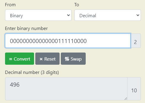 decimal로 496이 나온다.