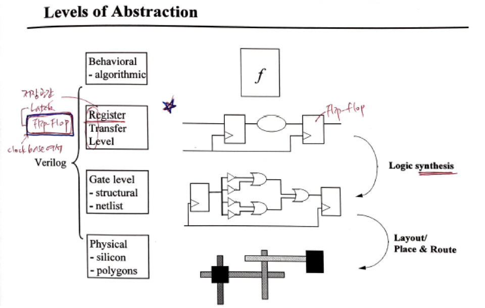 2) RTL 코딩으로 R에 해당하는 Register로 알고리즘을 구성하는데 Clock base인 Flip-flop으로 만듦. (Latch는 clock base 아님)