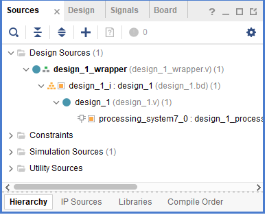 그러면 아래와 같이 design_1(위에서 만든 IP)를 wrapper로 감싼 desing_1_wrapper가 생성된다.