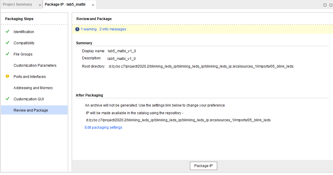 여기서 Package IP 버튼을 누르면 해당 파일이 생성된다.