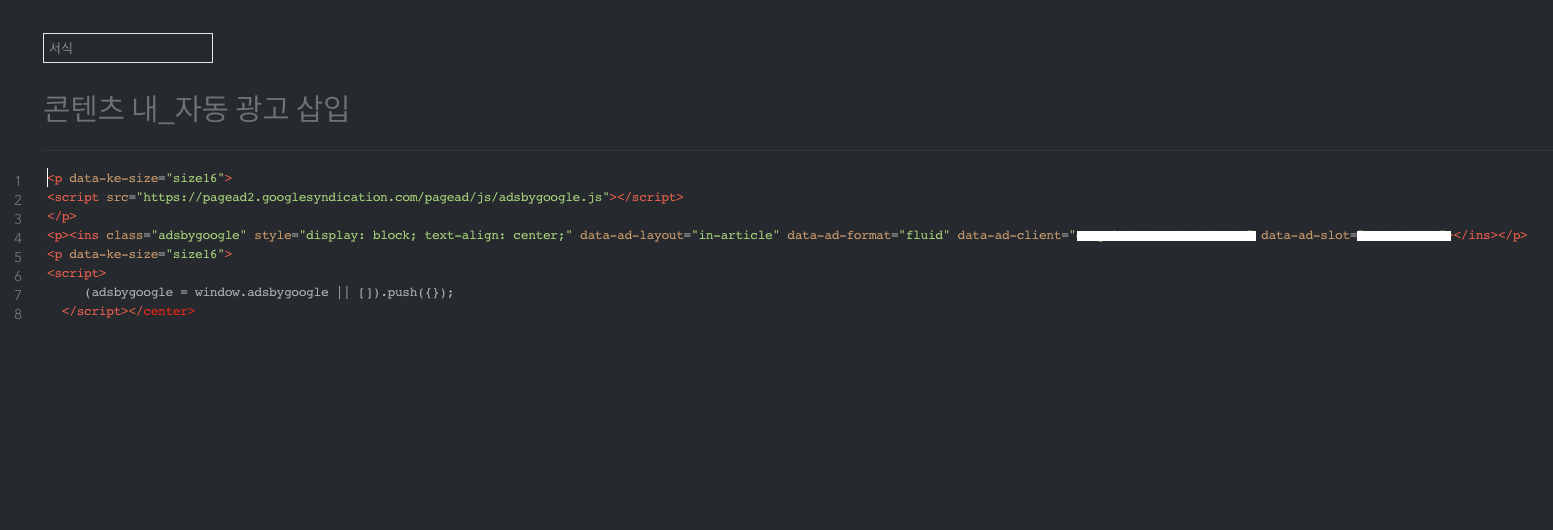 게시글 내(중간)에 광고 삽입하는 법